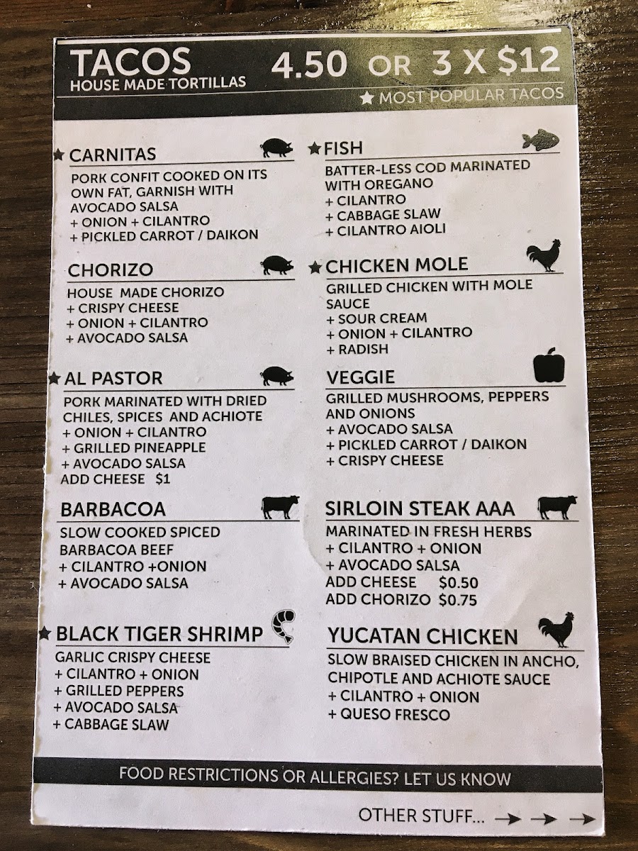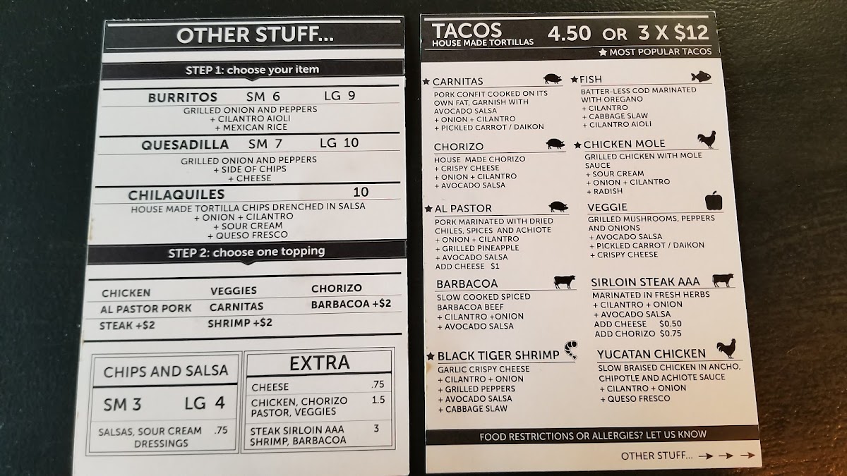 Potentially the best tacos in the city. The chef and owner prepare all fresh products from scratch. The tortillas are home made and make all the difference. Each taco is packed with unique flavors and you can order every taco on the menu and be left satisfied. The hot sauce is a must to compliment each taco you enjoy. Small but cozy joint offering up some of the best Mexican tacos.