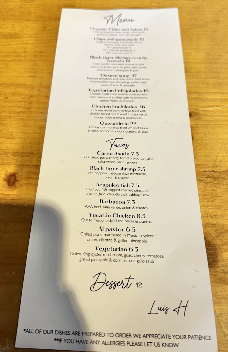 We went here for lunch, and were truly impressed. The tacos were all delicious (we had 6) and their homemade beverages were so refreshing!! Everything is made from scratch! We will most certainly be back, my go to place in this area of town for sure